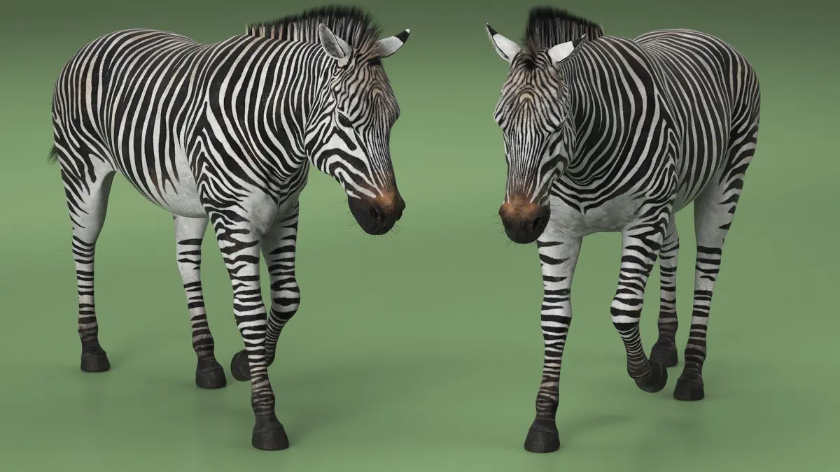 Zebra Adult Walking Fur is a high quality, photo real 3d model that will enhance detail and realism to any of your rendering projects. The model has a fully textured, detailed design that allows for close-up renders, and was originally modeled in 3ds Max 2020 and rendered with V-Ray. Renders have no postprocessing!