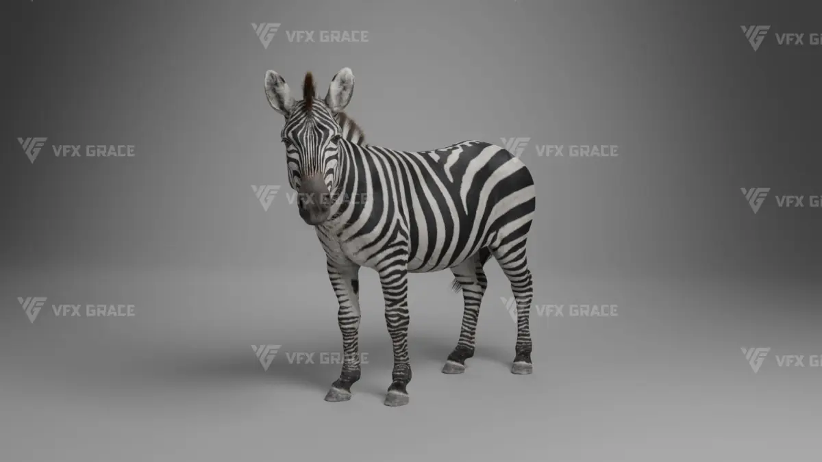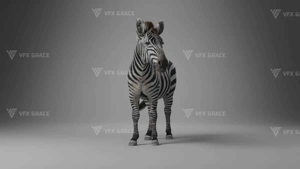 This package includes three high-quality zebra characters with models, textures, hair, rigging, and four lifelike and charming realistic animations. The models feature realistic muscle structures, and the textures are created at 4K resolution for enhanced realism. The rigging is highly detailed, allowing flexible control of body movements. This model is made with Blender and Cycles renderer at real-world scale.