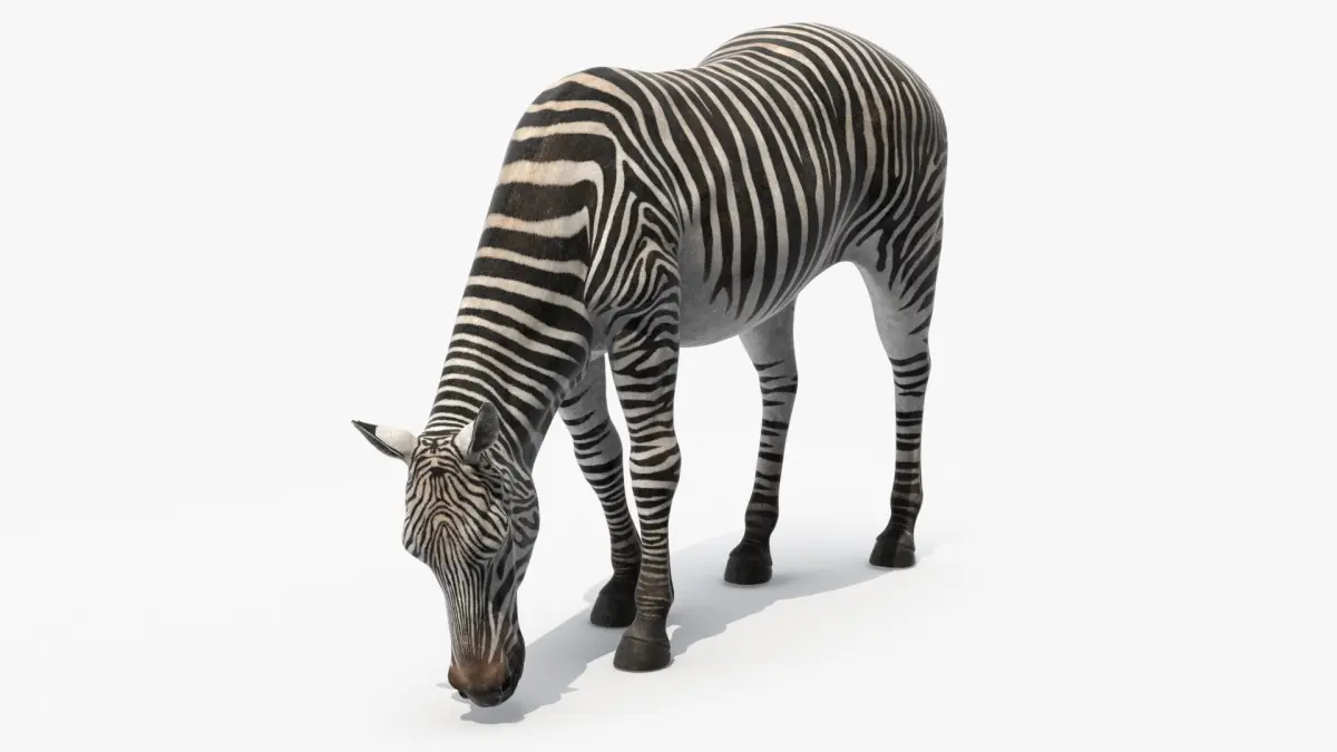 Zebra of Serengeti Eating is a three-dimensional model of plains zebra, common zebra or Equus Quagga, that is a species of zebra native to the grasslands and savannas of Africa.