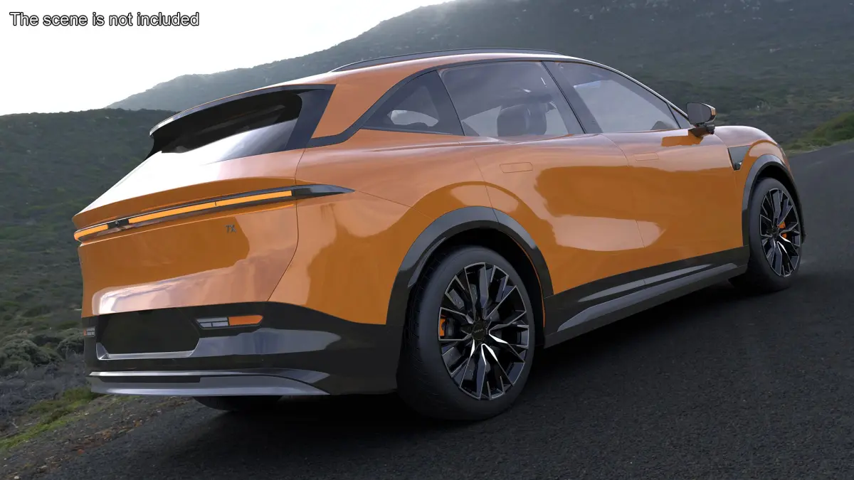 Zeekr 7X Luxury Sunset Orange SUV is a three-dimensional model of Zeekr 7X electric mid-size crossover SUV, designed as a modern and sustainable mobility solution.