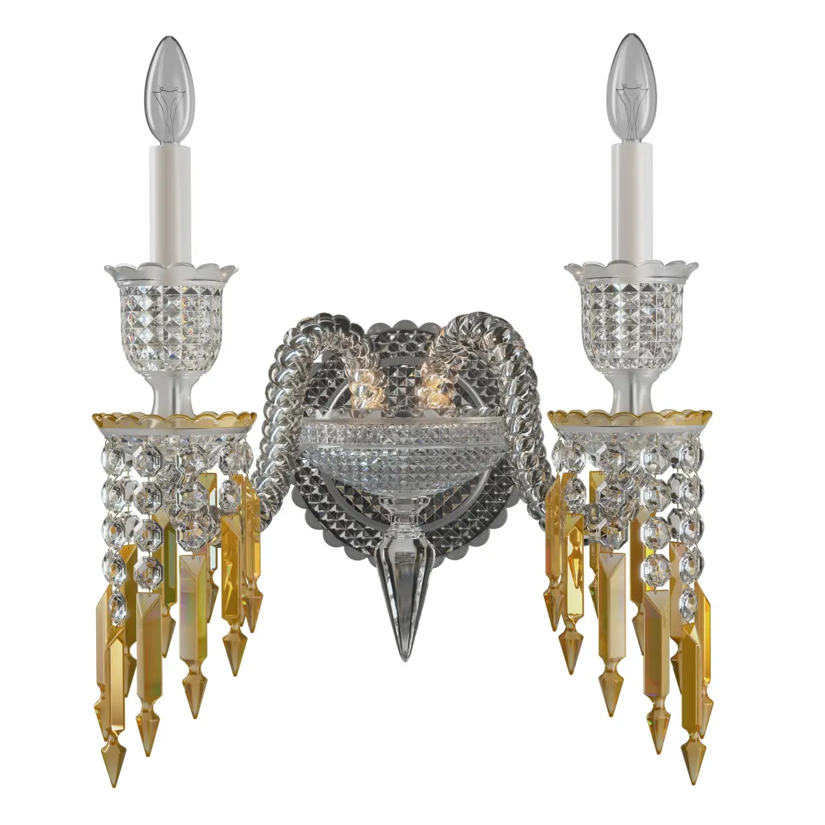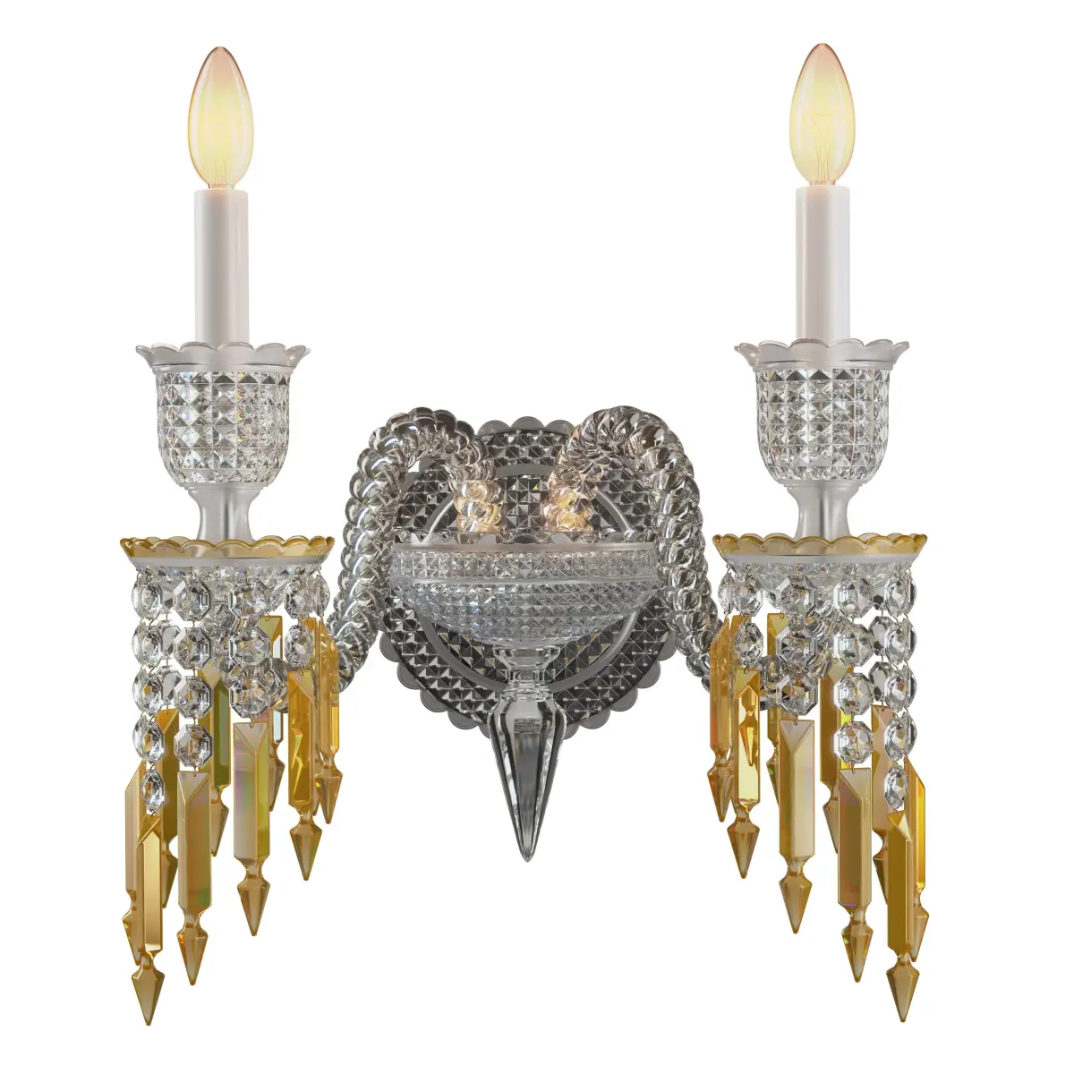 - Crystal wall unit made of a central cup with diamond bevelled cut and twisted arms made according to the great crystal making tradition.