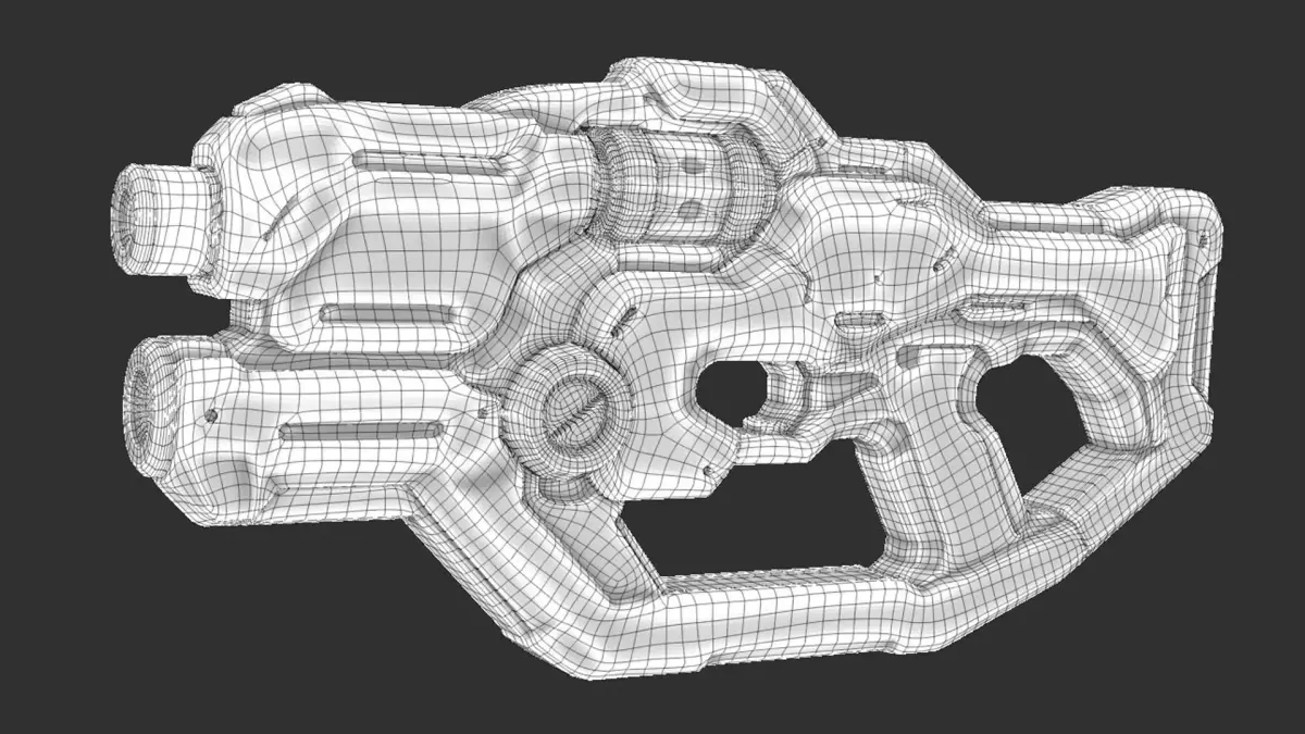 High-quality Ironhowl plasma gun model crafted in ZBrush. The asset includes a clean UV map and supports optimized topology reduction down to 29,582 polygons while preserving all essential forms and fine details.