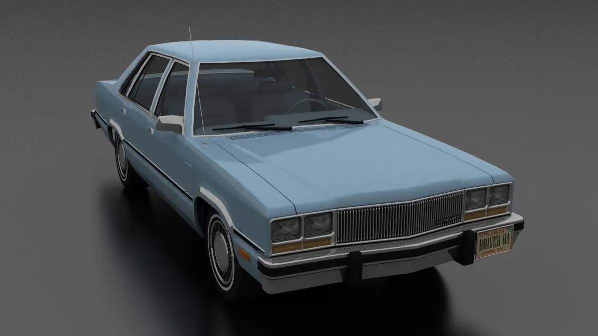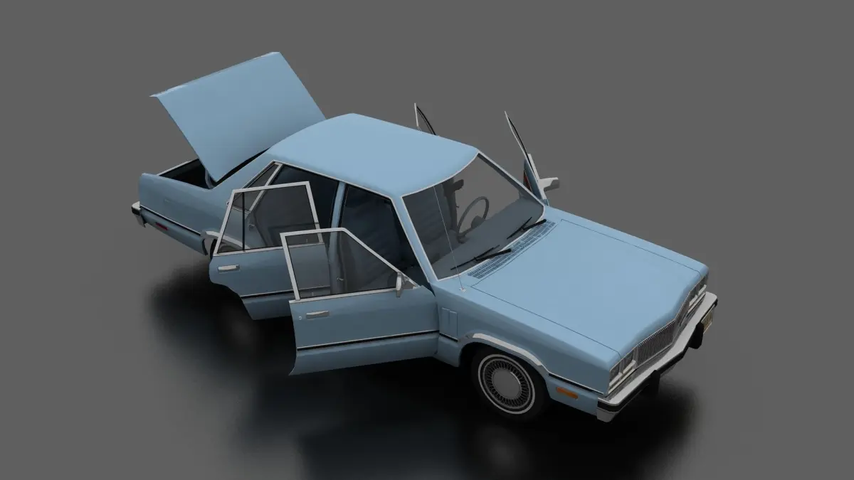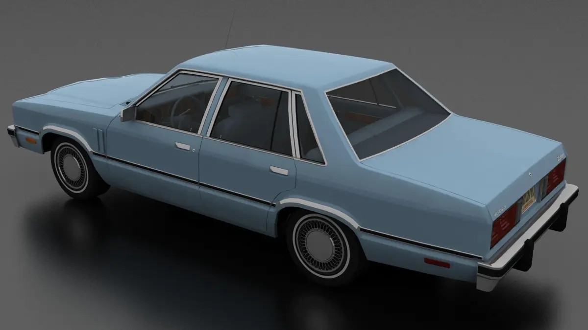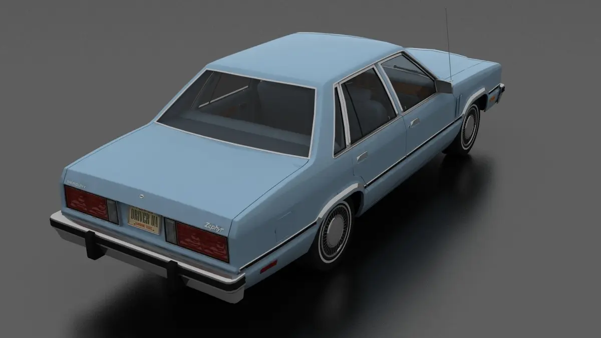 3D model of Zephyr 4dr sedan 1978. Opening doors and boot, detailed interior. American 2 door compact car produced in 1978-1982