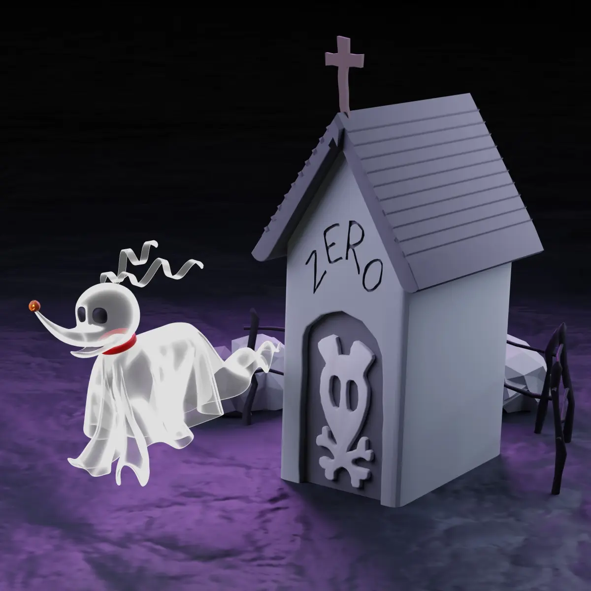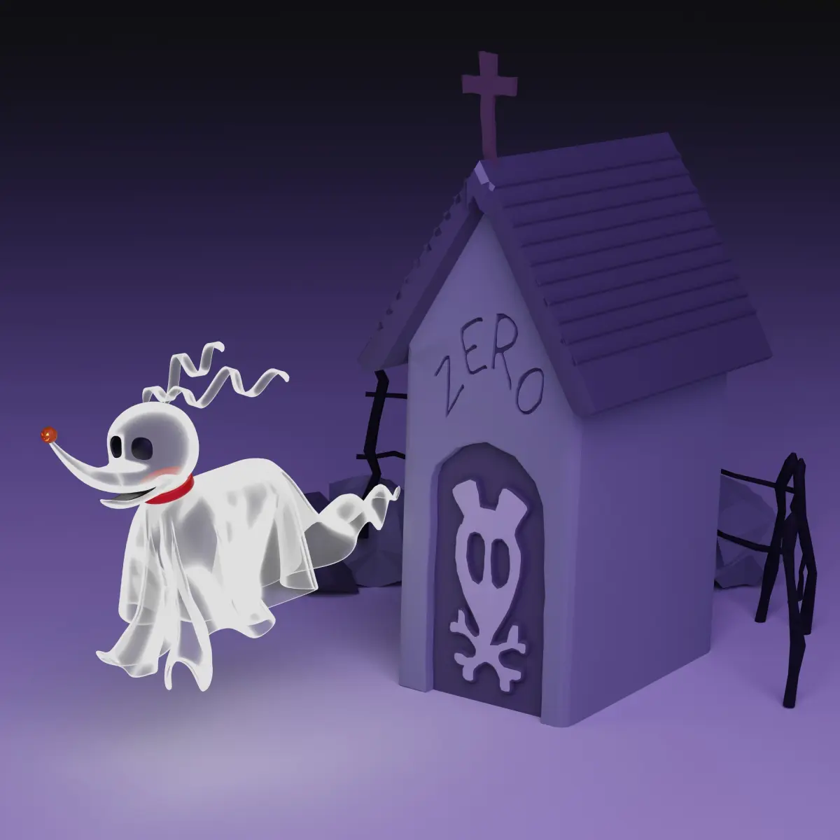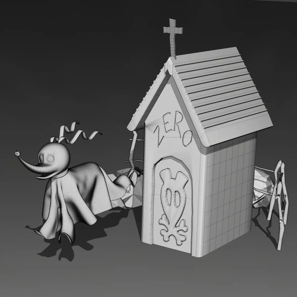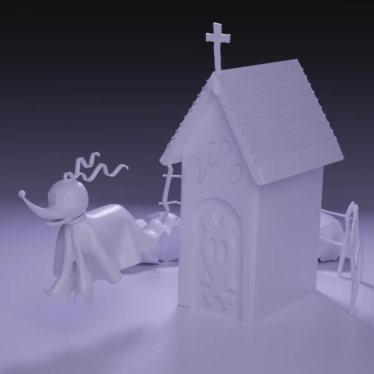 Zero and his home from Tim Burton's Nightmare Before Christmas classic stop-motion movie.
