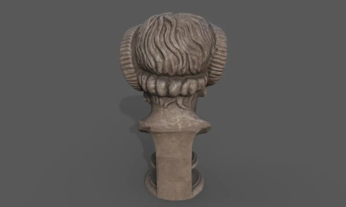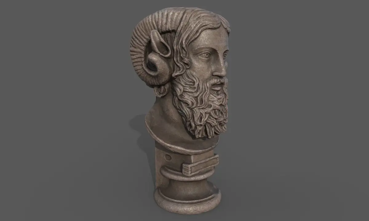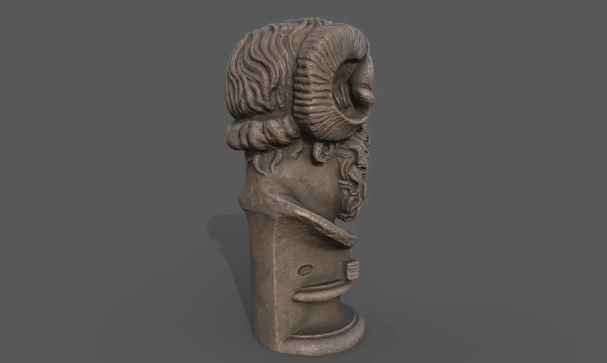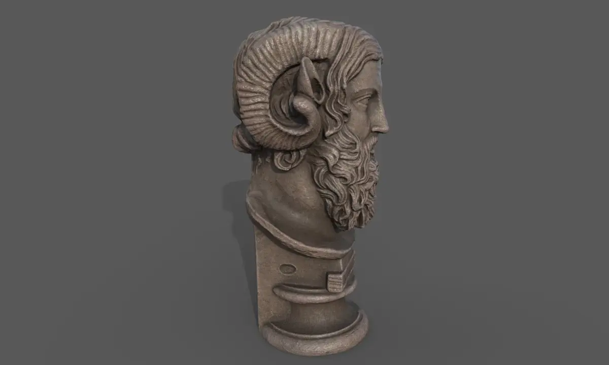 low poly sculpture model of Zeus Ammon's head for use in Architectural visualization, AR, and game engines