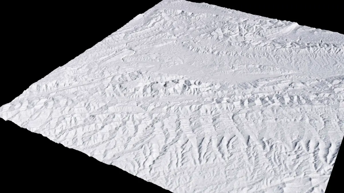 Originally created in Houdini 19. Final images rendered in Houdini. Data source is ASTER GDEM V3, ASTER WATER V1, Open Streep Maps 2022, Copernicus Sentinel 2016.
