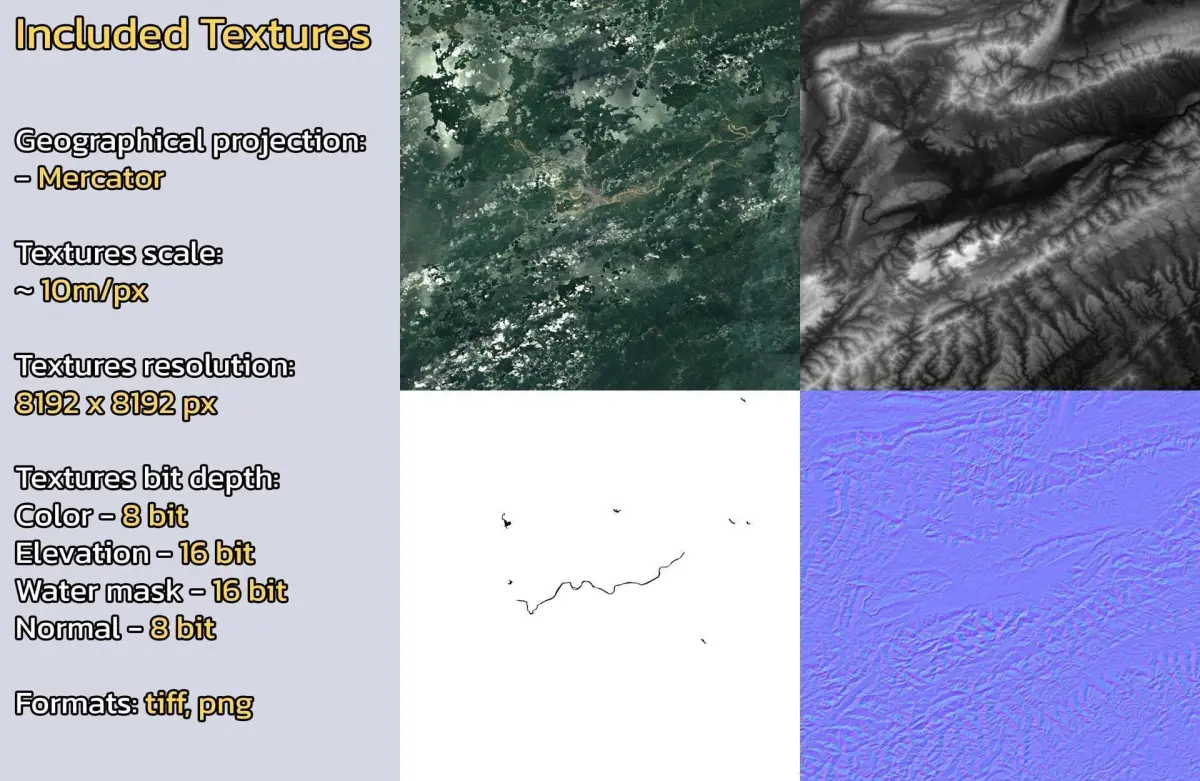 - Textures resolution: ~10m/px