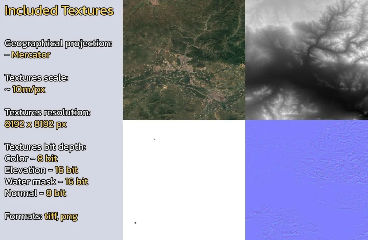 Warning: minor clouds/artifacts may be present on the diffuse color satellite texture due to the nature of the dataset. Check product images.