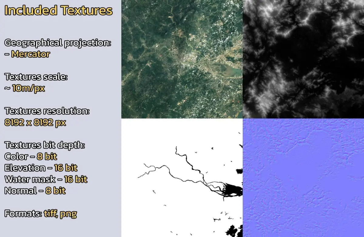 - Textures resolution: ~10m/px
