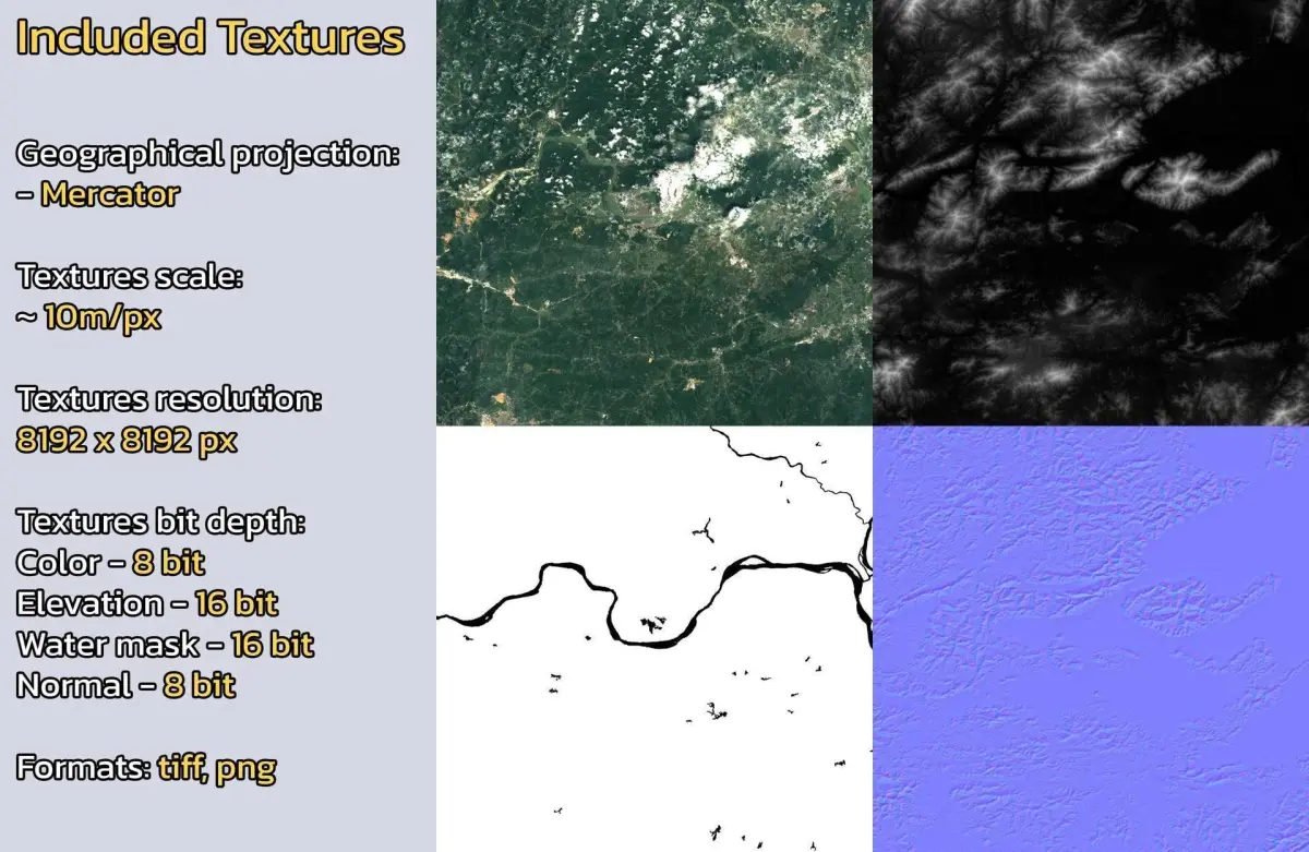 - Textures resolution: ~10m/px