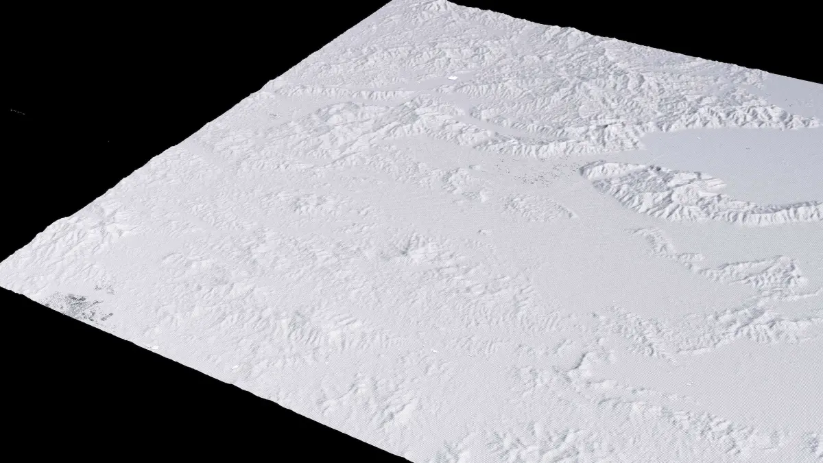 Originally created in Houdini 19. Final images rendered in Houdini. Data source is ASTER GDEM V3, ASTER WATER V1, Open Streep Maps 2022, Copernicus Sentinel 2016.