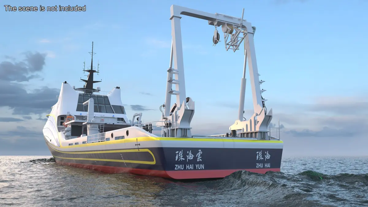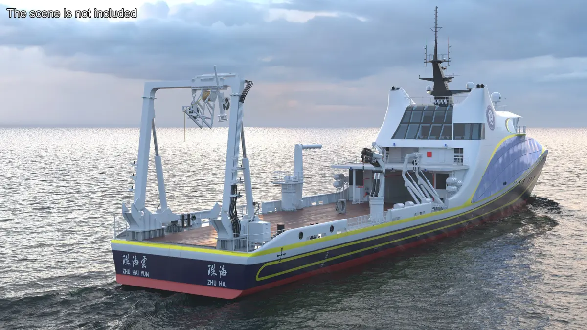 Zhu Hai Yun Ship for Transporting and Launching Drones is a 3D model of an advanced maritime vessel designed specifically for the transportation and deployment of aerial and underwater drones.