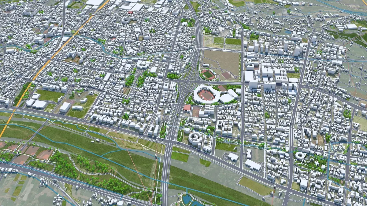 Accurate 3D city model and its surrounding area based on GIS data Year 2023