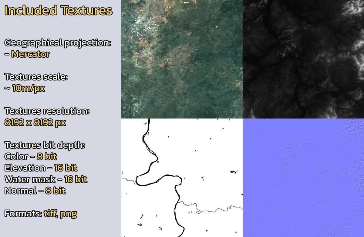 Warning: minor clouds/artifacts may be present on the diffuse color satellite texture due to the nature of the dataset. Check product images.