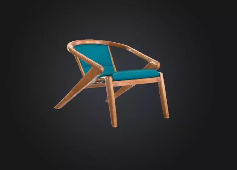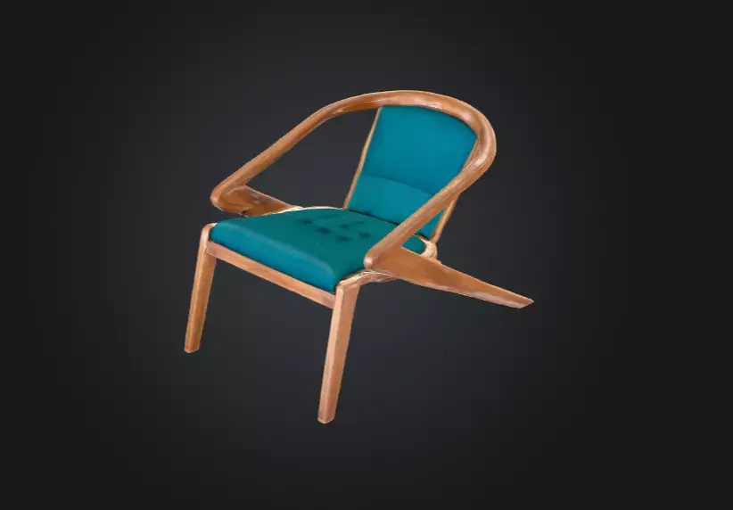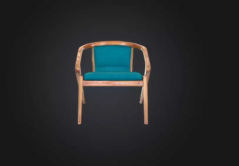 Each element of this model — from the polished wood grain to the fine textile texture — is meticulously detailed with PBR materials, ensuring lifelike reflections and shadows. The teal fabric provides a bold color contrast against the warm wooden tones, giving the chair a luxurious and contemporary appeal.