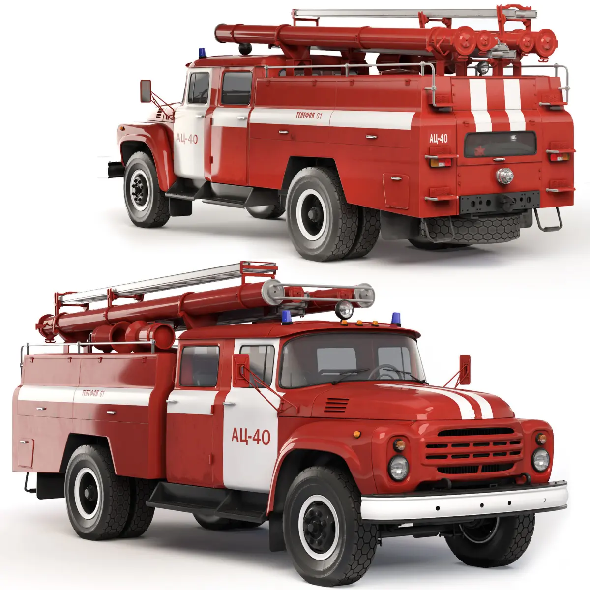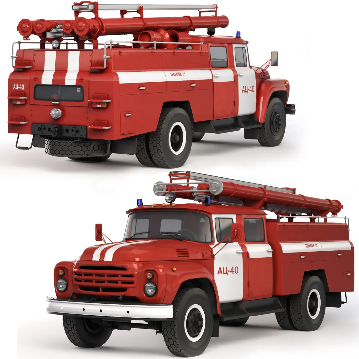 AC-40(130) - One of the most massively produced Soviet fire engines. The fire tanker ATs-40(130) is designed to deliver combat crew, fire extinguishing equipment, fire fighting equipment (PTO) to the fire site and is used to extinguish fires with water and air-mechanical foam.