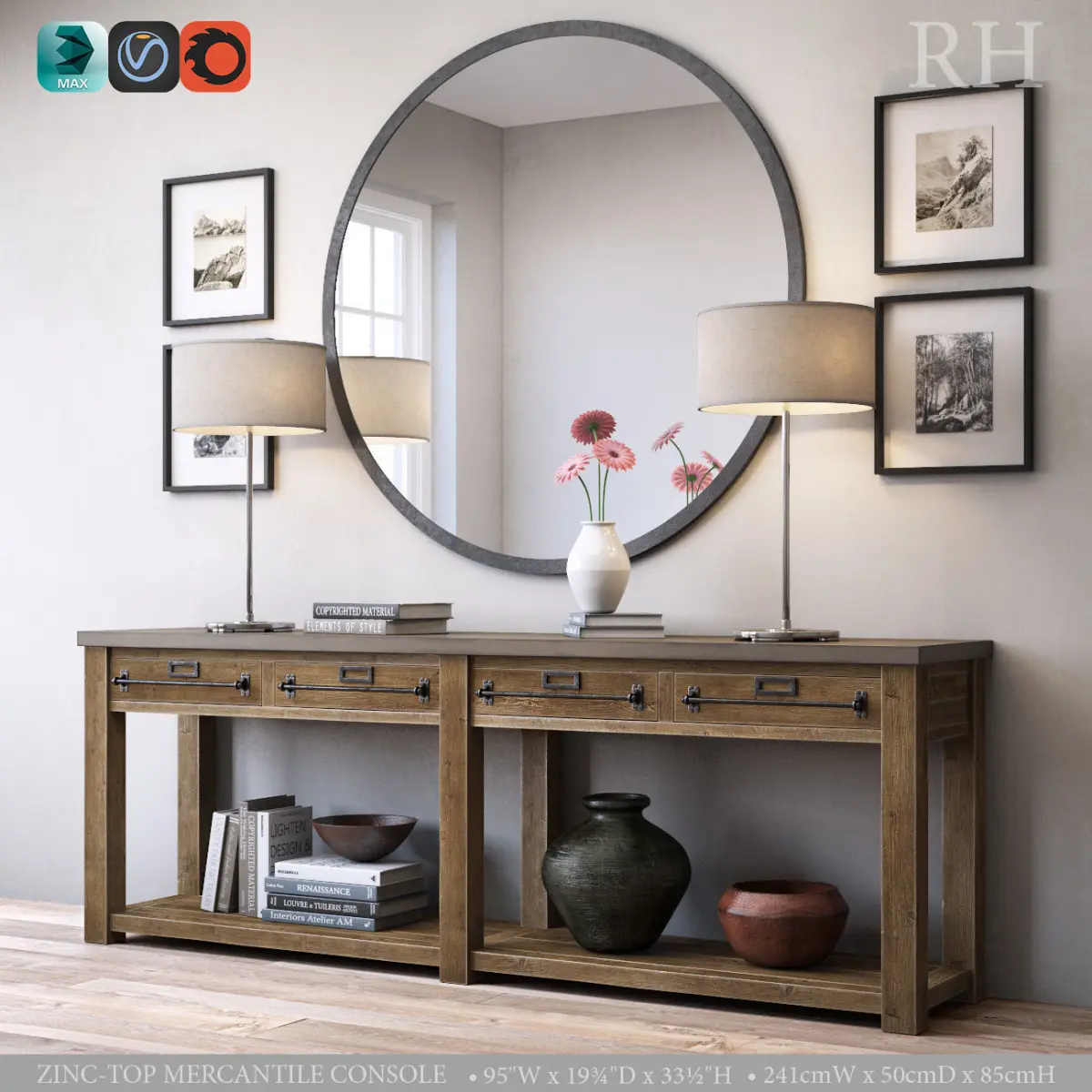 ZINC-TOP MERCANTILE CONSOLEArchives included: textures, materials (vray, corona),3DS, FBX, OBJ, 2012 max, 2014 max scene.Model was created in 3ds Max 2014.Shader for V-Ray 3.30.05Shader for Corona 1.5Dimensions table:•95W x 19,75D x 33,5"H•241cmW x 50cmD x 85cmH