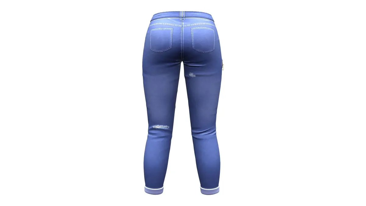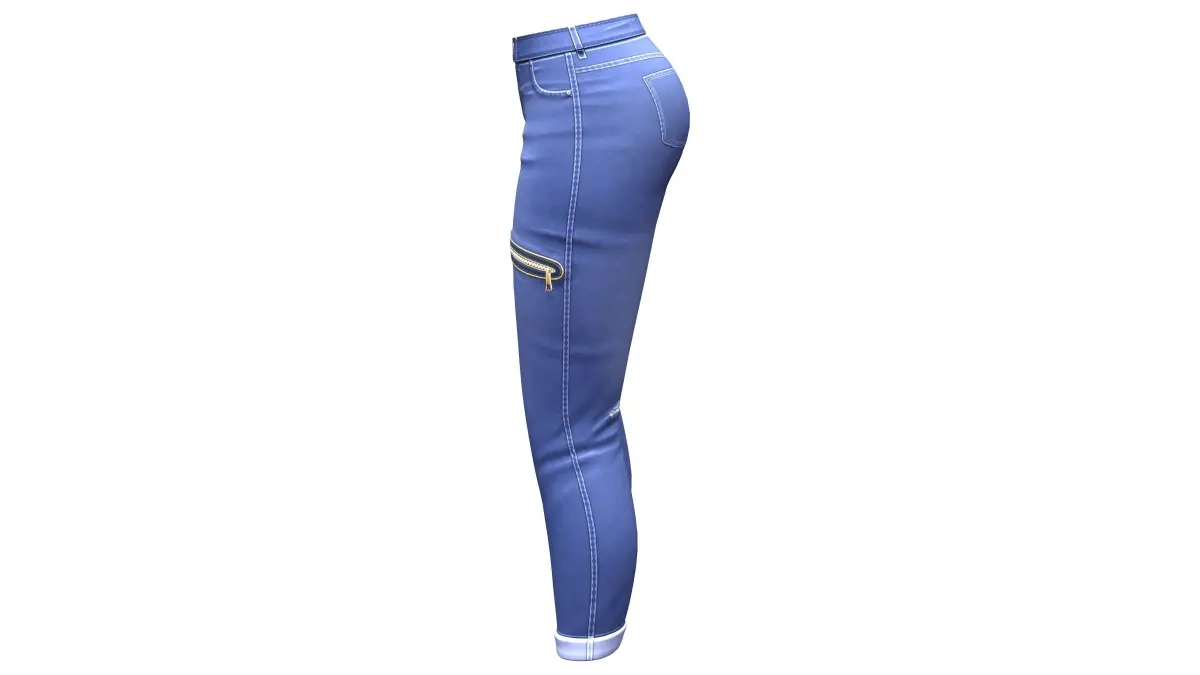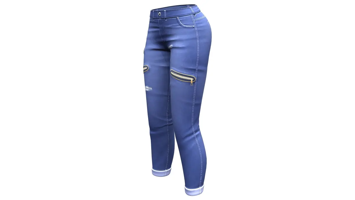 Zip Pockets Rolled Legs Denim Pants