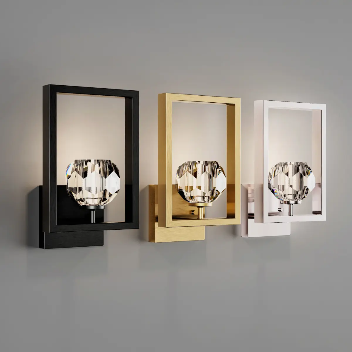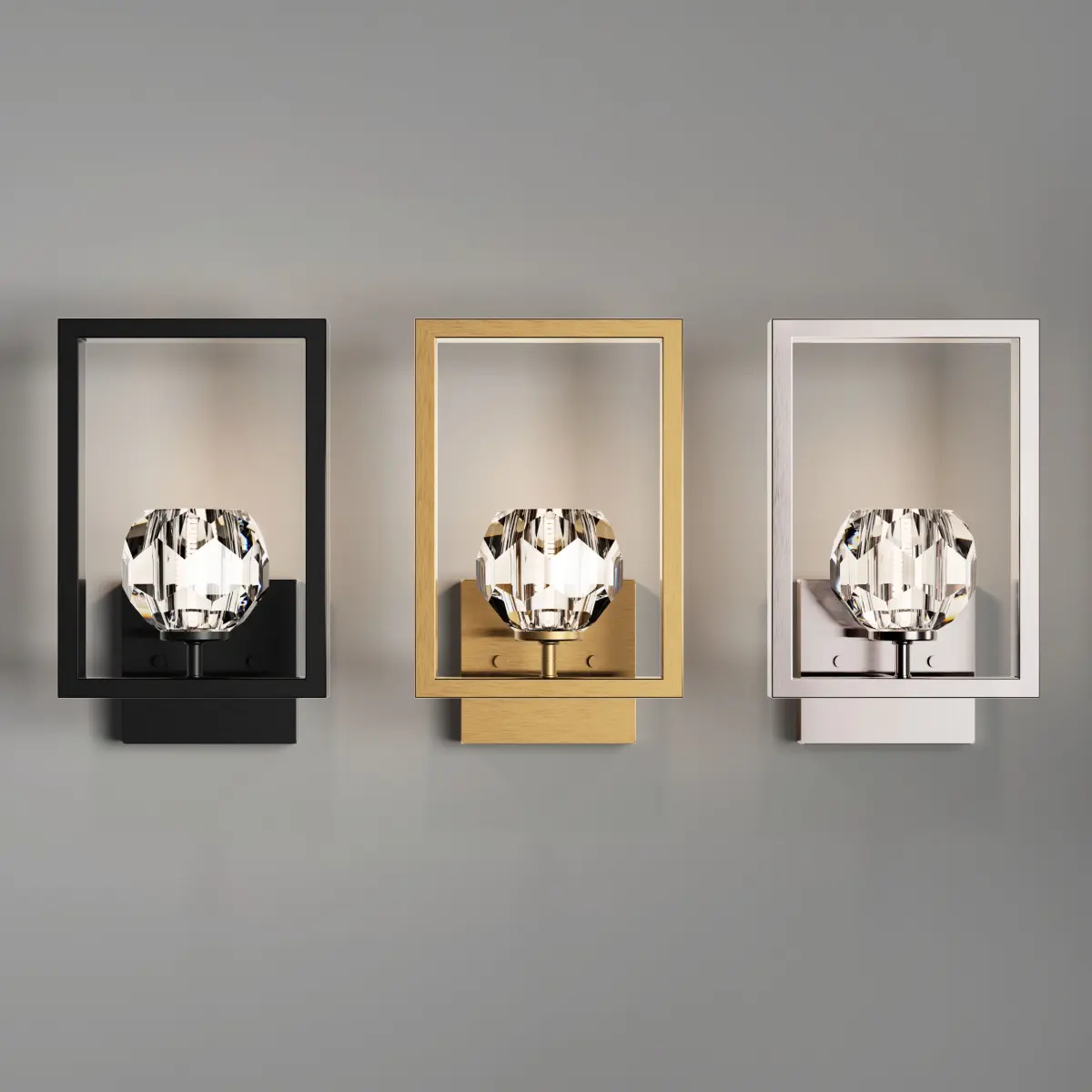 - Matte Brushed Gun Metal Finish with Crystal Glass - https://www.westinghouselighting.com/light-fixtures/interior-lighting/wall/zoa-one-light-led-indoor-wall-fixture-6367300.aspx