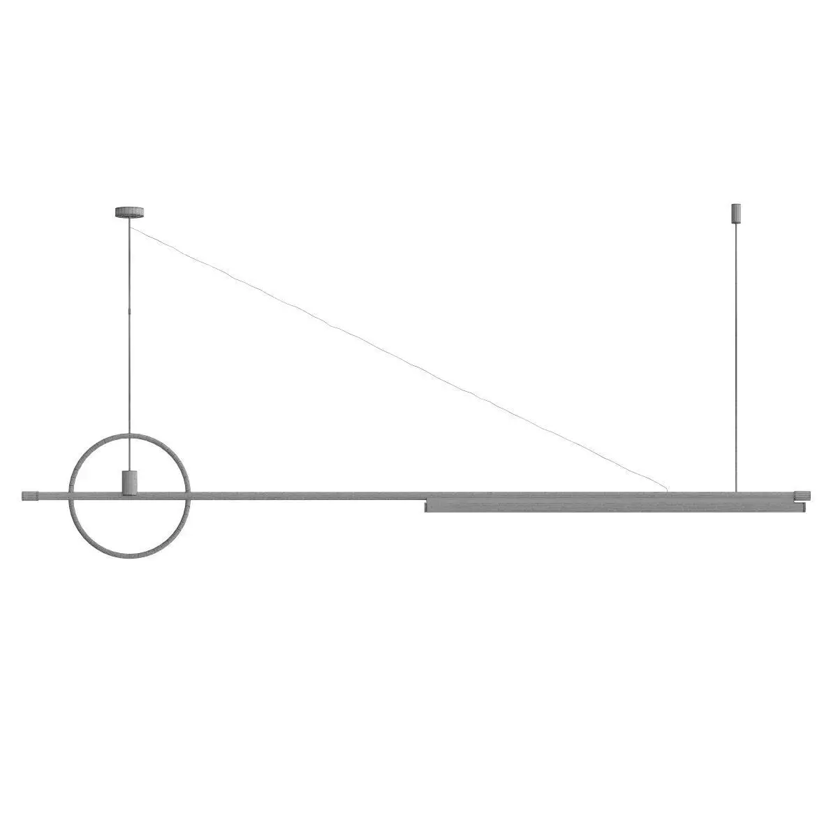 This is a premium 3D model of the Lampatron ZODIAC chandelier, a truly unique and artistic lighting fixture. The model accurately captures the lamp's unique design, which features a prominent horizontal bar from which a series of gracefully curved wooden or metal elements are suspended. The design is both playful and sculptural, creating a beautiful contrast between the rigid lines of the frame and the soft, organic curves of the light elements.