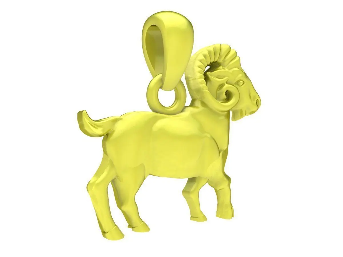 This zodiac ram goat pendant 3D model features a bold animal-inspired design with strong symbolic meaning. The ram figure is sculpted with clear anatomical details, curved horns, and a confident posture, creating a powerful and masculine visual presence.