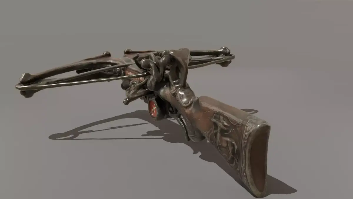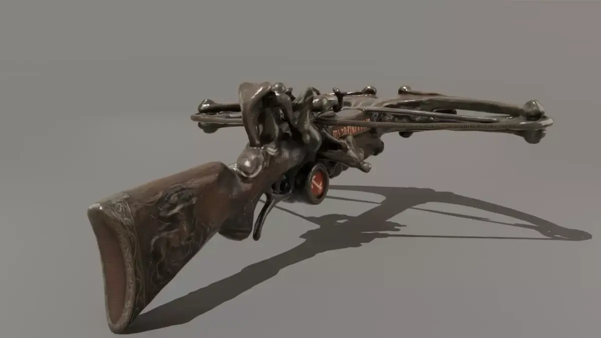 A stylized crossbow inspired by Sagittarius from the Zodiac series, designed with a dark fantasy aesthetic. Its sharp structure and distinctive form make it ideal for archers, hunters, or mystical characters in RPG and fantasy environments.