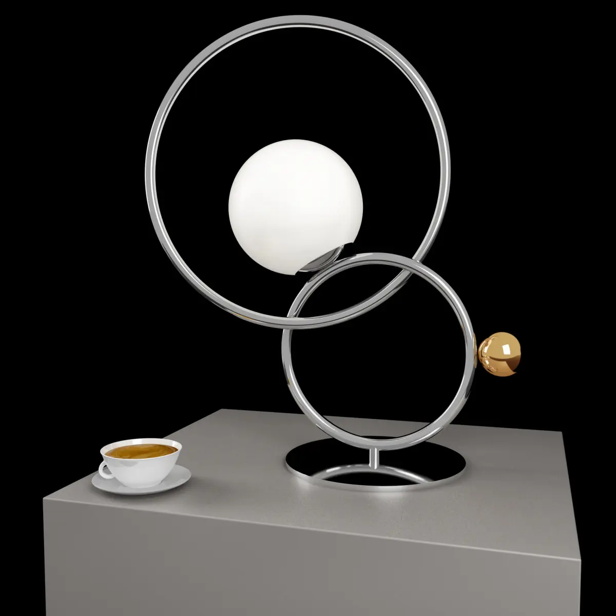 This is the Zoe table lamp from Venice M. It comes in 2 colors, silver and gold. The coffee and nightstand also comes with the scene.