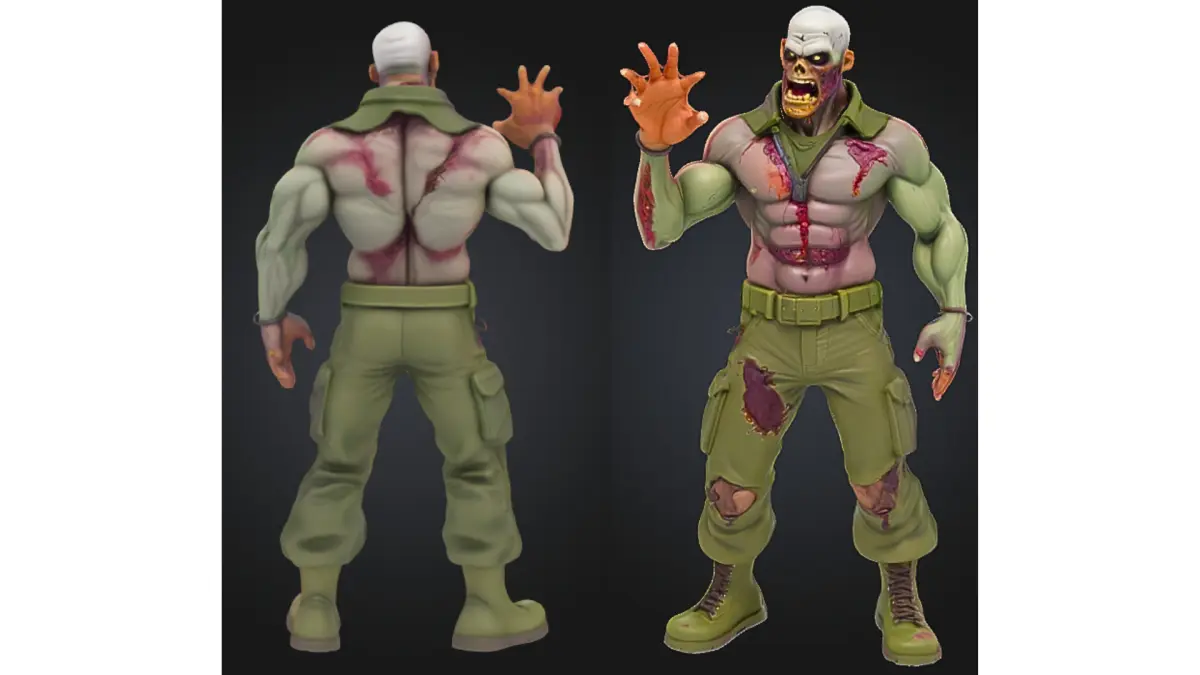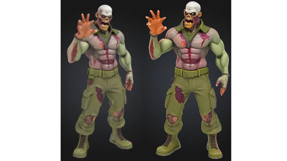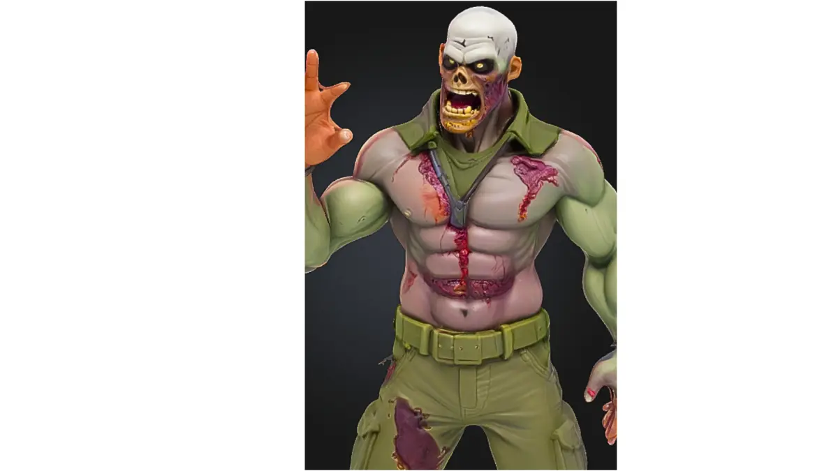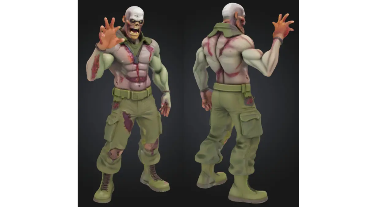 This stylized zombie fighter brings a fierce undead presence to your game. With a ripped torso, torn army pants, and intense facial expression, this model fits perfectly in stylized horror games, mobile battle arenas, or post-apocalyptic animations.