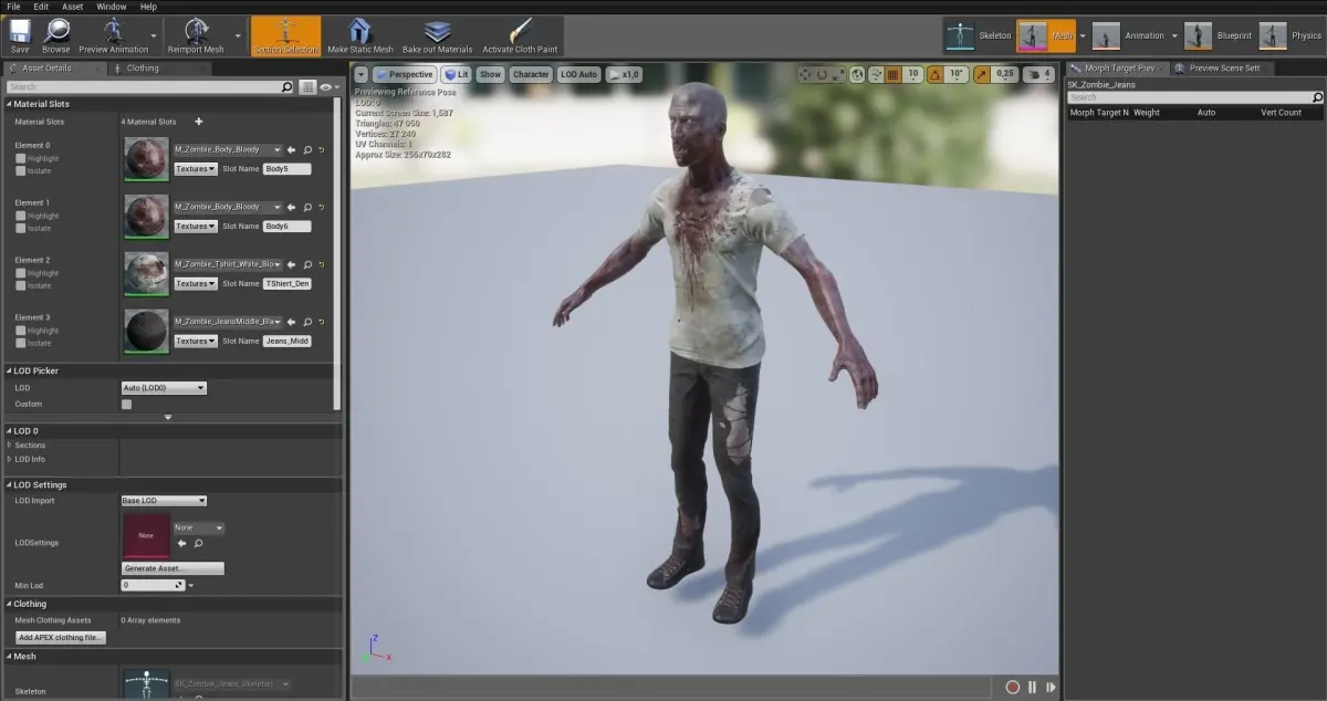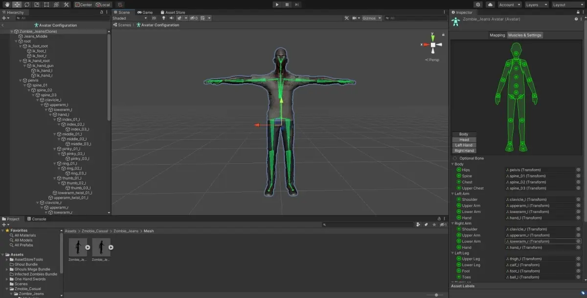 High-quality realistic low-poly 3D models of Zombie in JeansThe model is ready for use in games and other real-time applicationsAdditional Notes: rig has additional bones: eye_l, eye_r, eyelashes_l, eyelashes_r, jaw