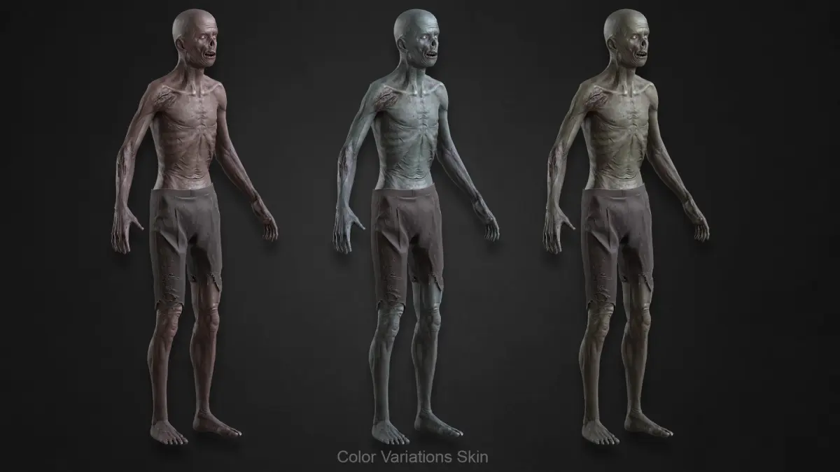 Materials have Color Variations settingsHigh-quality realistic low-poly 3D models of Zombie in PantsThe model is ready for use in games and other real-time applicationsAdditional Notes: rig has additional bones: eye_l, eye_r, eyelashes_l, eyelashes_r, jaw