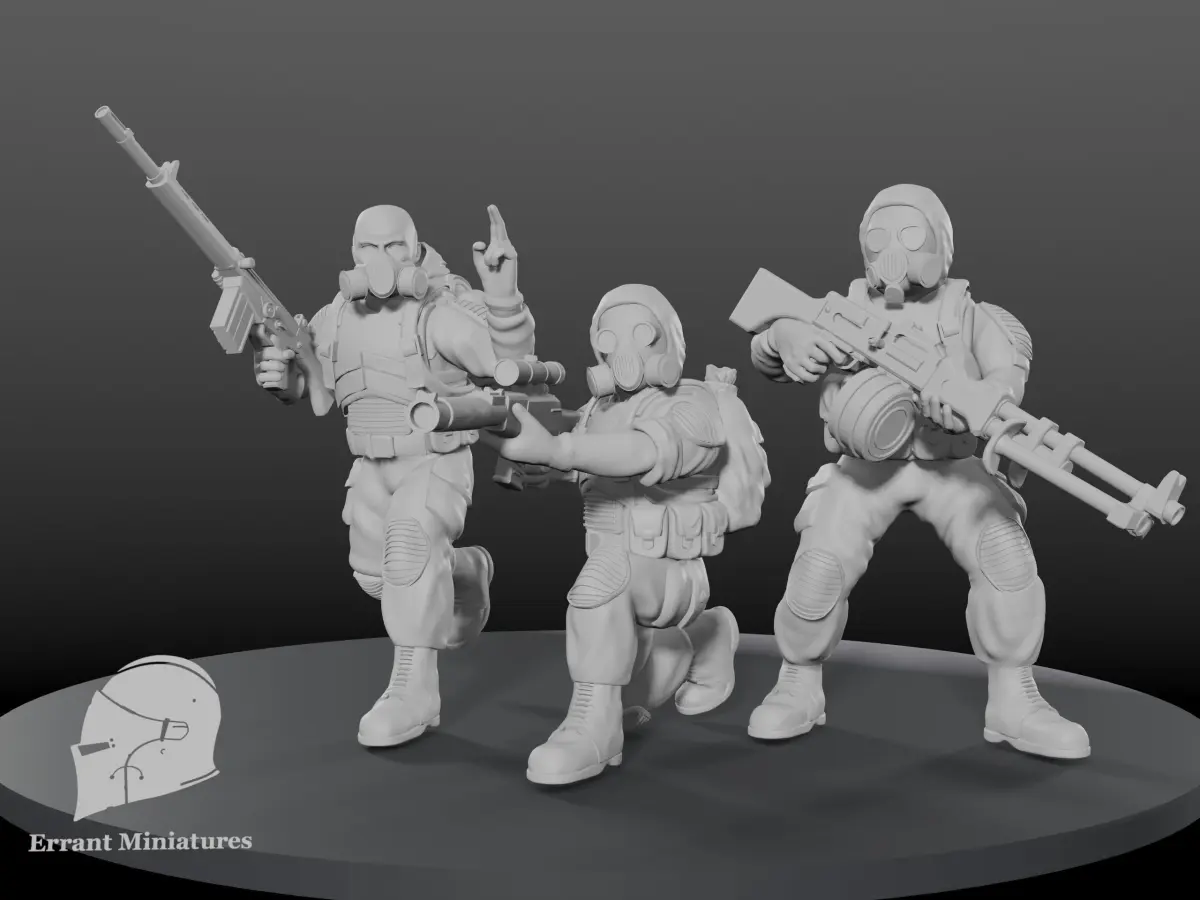 A set of multi-part 28mm miniatures suitable for skirmish games such as Zona Alfa and This Is Not a Test or post-apocalyptic RPGs. Includes a variety of weapon, head, and accessory options.