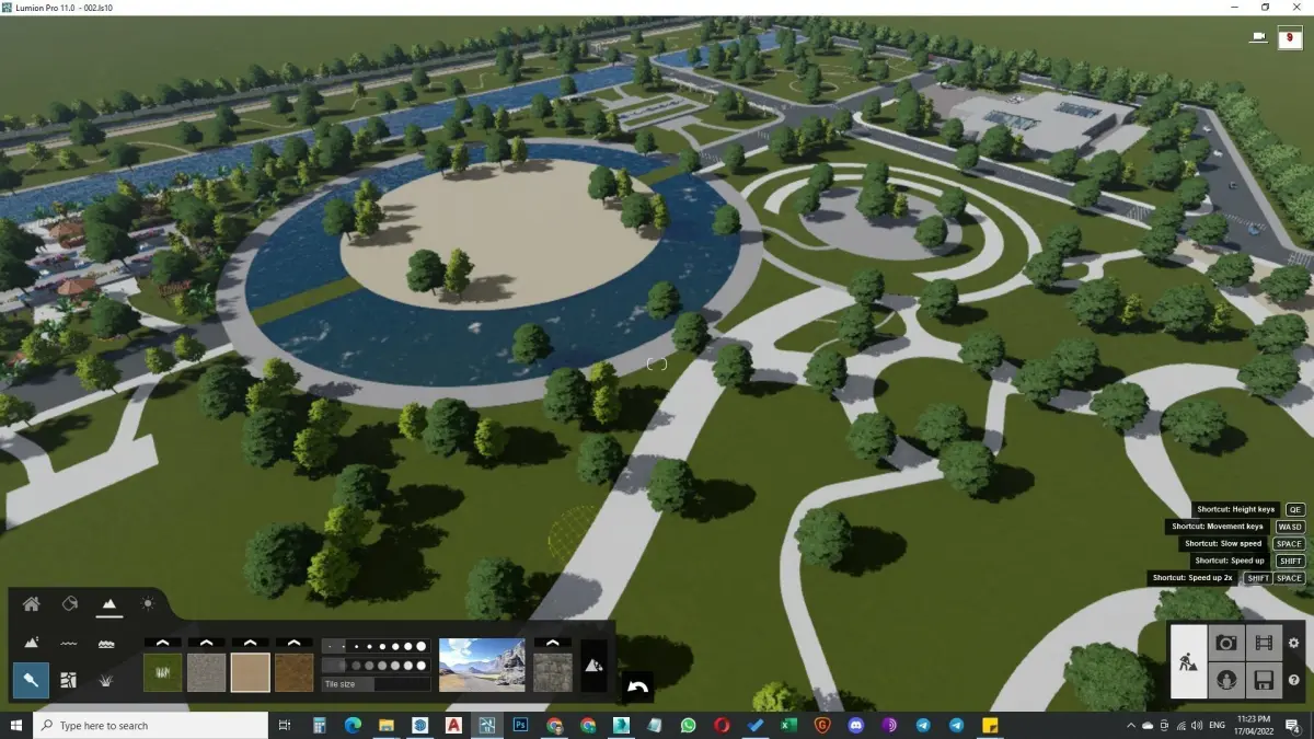 Modeling is In Sketchup and Rendering is in Lumion 11 + Effects All Buildings are in properly Group Also Model is exported in Every Extension Entrance, ticketing recreation area, facilitation centre, restaurant, zoo, bird house, snake house, Public Amenities, Hospitals for Aanimals, public parking lot, fountain garden, Artificial Island, Amphitheatre, café, Restaurant, Bbotanical garden, boating, lake
