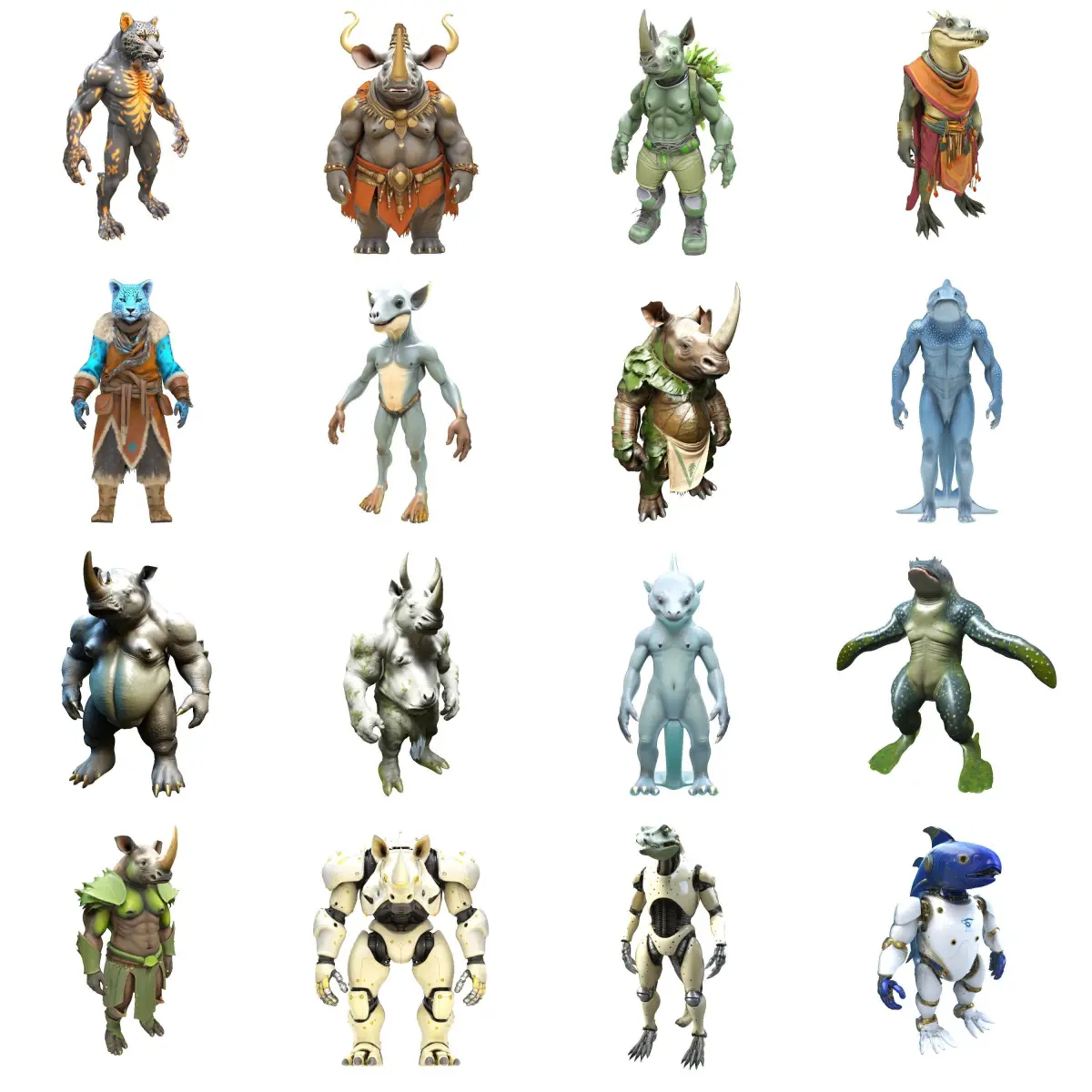 **AI USE DISCLOSURE:**These designs were co-created using AI 3D generators to spark initial concepts, then lovingly polished by human artists to ensure every scale, muscle, and accessory feels intentional and magical. Think of it as a collaboration between technology and artistry!