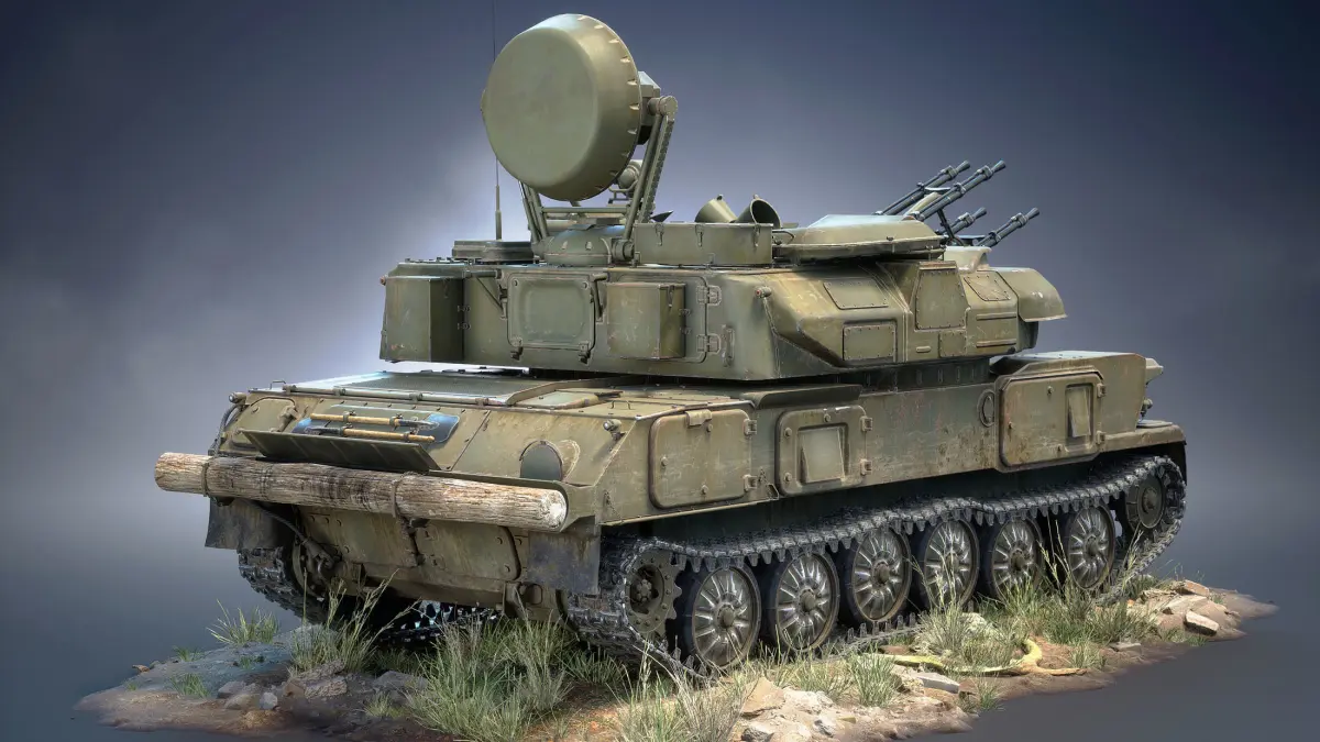 This is low-poly game 3d-model of Soviet self-propelled, radar-guided anti-aircraft weapon system ZSU-23-4 Shilka.