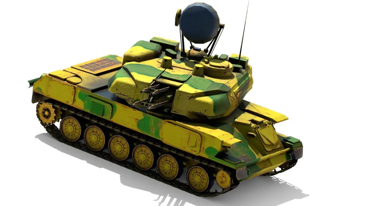 -Lowpoly Blender model , rendered in cycles -PBR Textures , and 4 basic color maps as usual (desert , green , nato green,enchanced desert).-Textures sizse vary from 512 in small objects to 2k in large objects .-Rigged (Track,Turret,radar) , animation/game ready.-Objects : 23 seperated objects , had to seperate every moving bart (wheels , cog , track , hull , turret) and 35 in totoal including the rigging empties track segemt rigged using empty and constrians , also the track made with arry modifier and curve path so not sure if it works in aother formats as in blender.