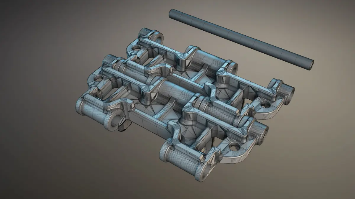 The high-poly tracks for an armored Soviet self-propelled anti-aircraft weapon system (SPAAG) ZSU-23-4 Shilka (SA-19 Grison).