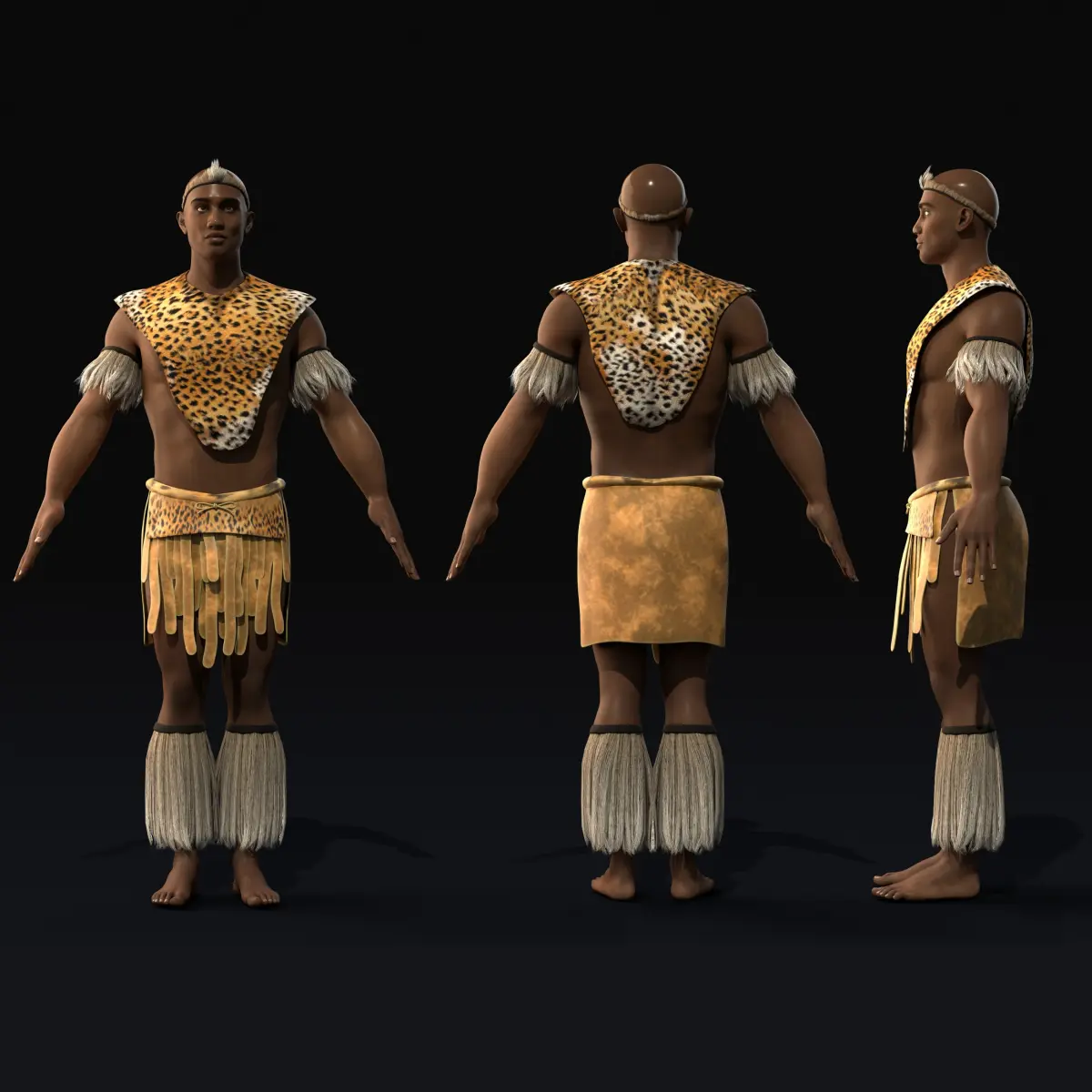 High Quality Semi Realistic Character4K PBR Textures Base Color, Roughness, Normal, Metallic, OpacityClean Topology and Optimized for Games Low Poly and High Poly versions includedFully Rigged for Animation Compatible with most game engines and animation software11 Weapons and Shields Included Iklwa, Assegai, Isihlangu, Knobkerrie, and moreFormats FBX, OBJ, Blend, UE5 Ready, Unity CompatiblePerfect For:Game Development RPGs, Strategy Games, Open World, Historical GamesCinematic and Animation ProjectsVirtual Reality and Augmented RealityHistorical and Cultural Visualizations