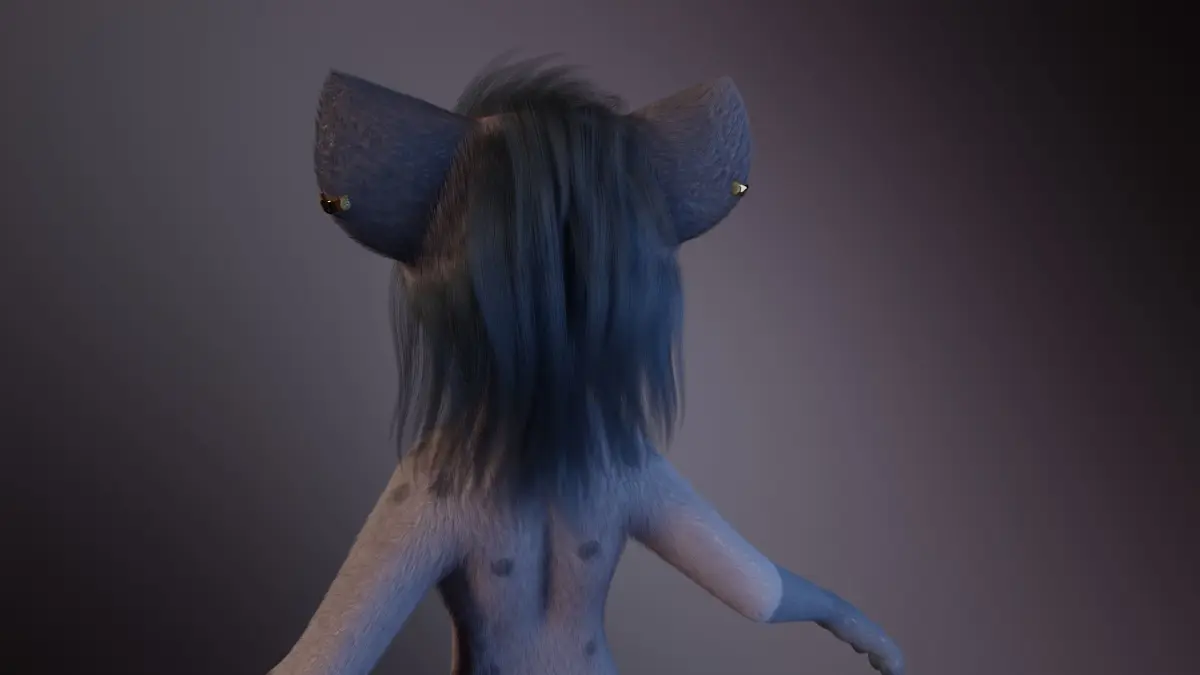 3D model of an anthro hyena made in Blender (.Blend) that I named Zuri. Rig , Hair and Fur only in blender, other formats only model mesh