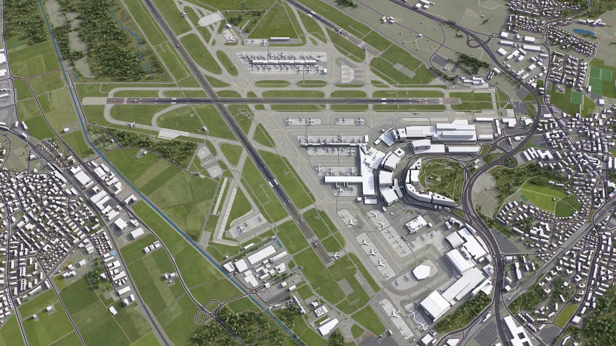 - Trees, vegetation, landuse and airport surface with the textures assigned