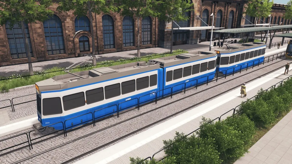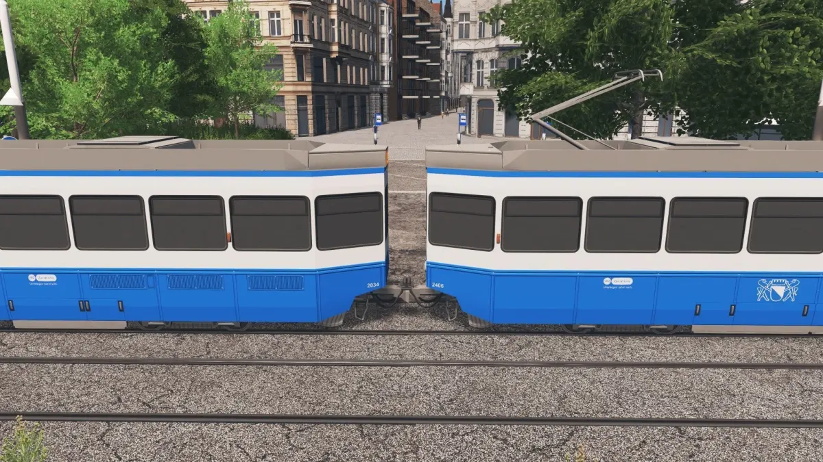 The Tram 2000 is a high-floor tram vehicle that was originally designed for the Verkehrsbetriebe Zürich (VBZ), the municipal transport operator of the Swiss city of Zürich, and first introduced in 1976. The last vehicles to the design entered service in 1994, but the type is still in front line service with all its original users. This model includes the standard 2-car consist plus the “Pony” trailer car.